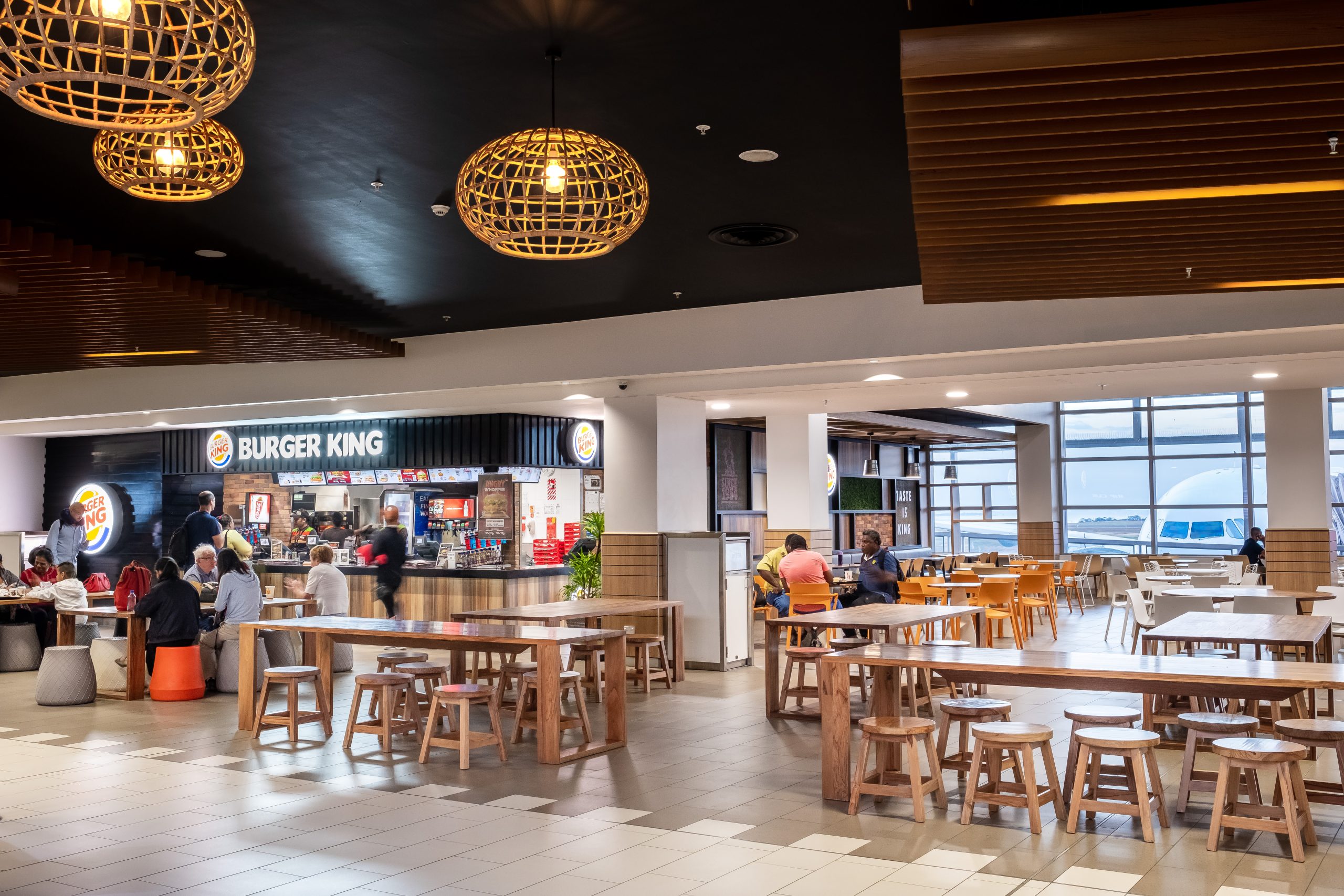 In our Domestic Terminal is Cafe Domestic which is open from 5am to 9pm. We have two Food and Beverage outlets in our International Departures Terminal. They are KokoNui Bar, Cafe & Restaurant and Burger King. Burger King has a second outlet in our Departures Lounge together with Bula Bar Bistro/ Gloria Jeans. In our Arrivals concourse area we have Cuppabula for your food and beverage needs.